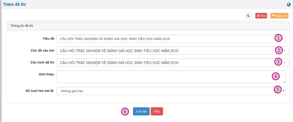 | 4 | Giới thiệu | Nhập giới thiệu ngắn gọn về đề thi |