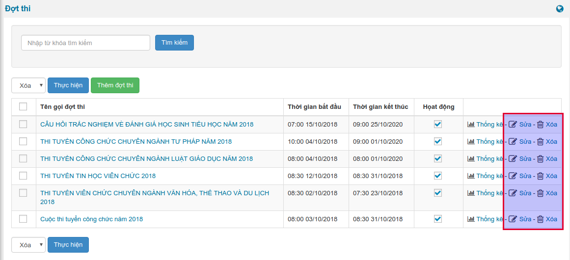 6.2. Sửa, xóa đợt thi