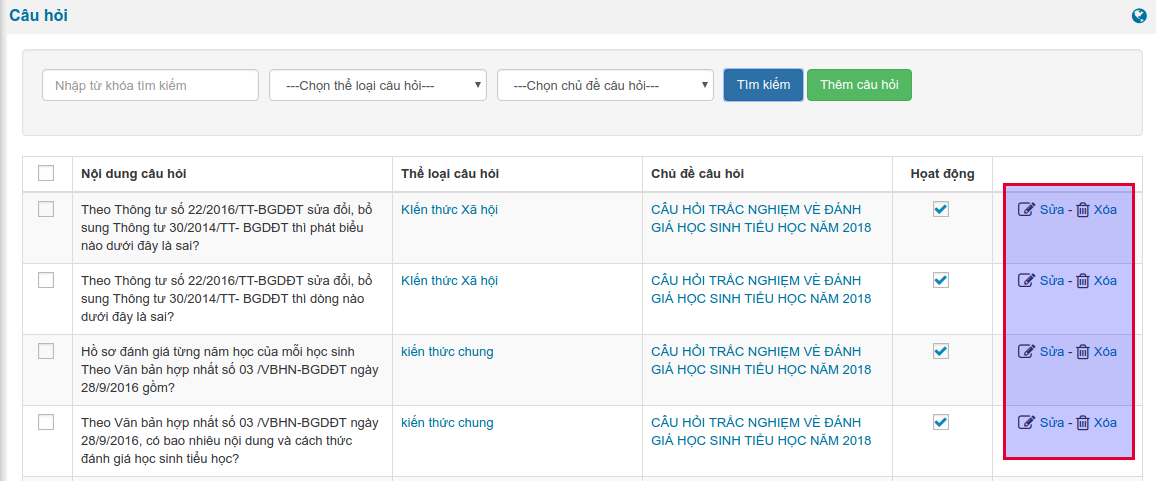 3.2. Sửa, xóa câu hỏi
